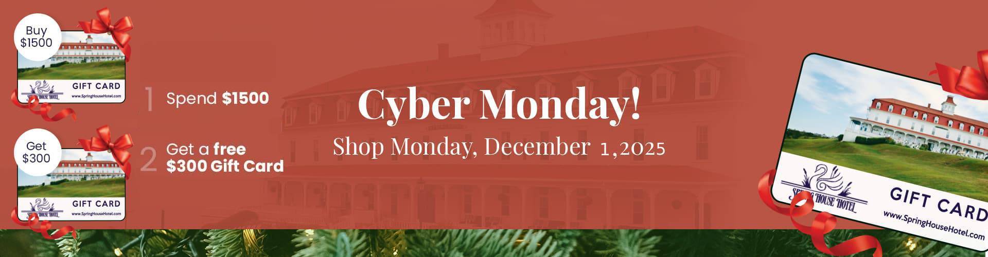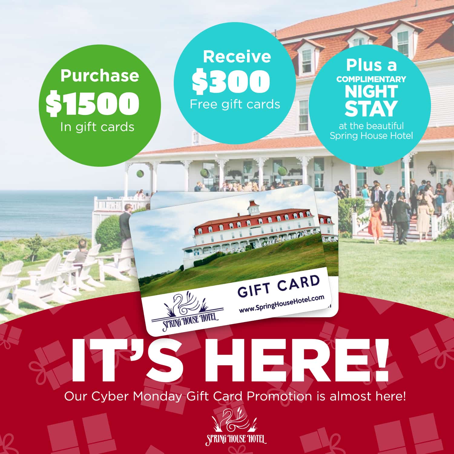 - Gift cards can be utilized at one of the hotel’s on-site restaurants and hotel rooms within the Main Building, Mott House, Barn Apartments, Inn at Spring House, and Spring House in New Harbor.