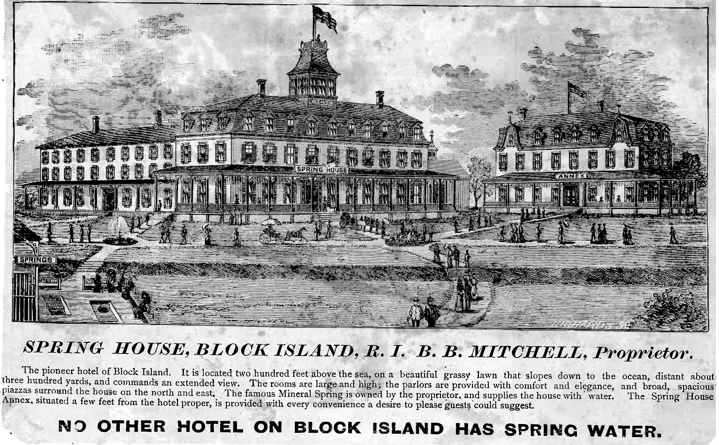 The Spring House Hotel is considered one of Block Island’s most elegant historic landmarks. With its wraparound veranda, mansard roof, distinctive cupola, and breathtaking view of the Atlantic Ocean and Block Island’s foothills, it is no wonder why the hotel is included among New England’s most desirable destinations.