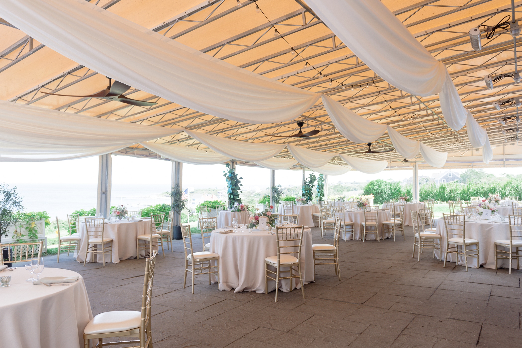 The East Overlook Patio is a perfect site for your welcome party, rehearsal dinner, or wedding reception. Imagine a cocktail party or seated meal in this tented space overlooking the ocean with your closest friends and family. (*Photos by Hilary B. Photography)